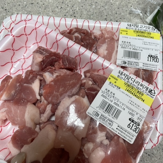 찌개용 고기와 제가 좋아하는 뒷고기를 사봤어요.
